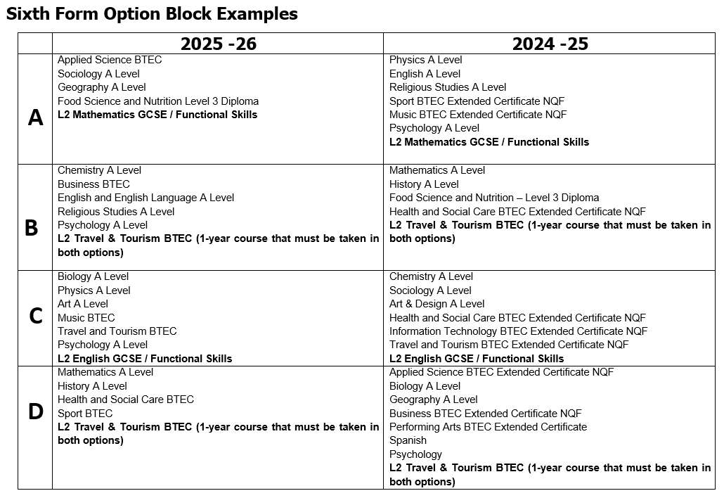 Sixth Form Option Blocks 2025/26